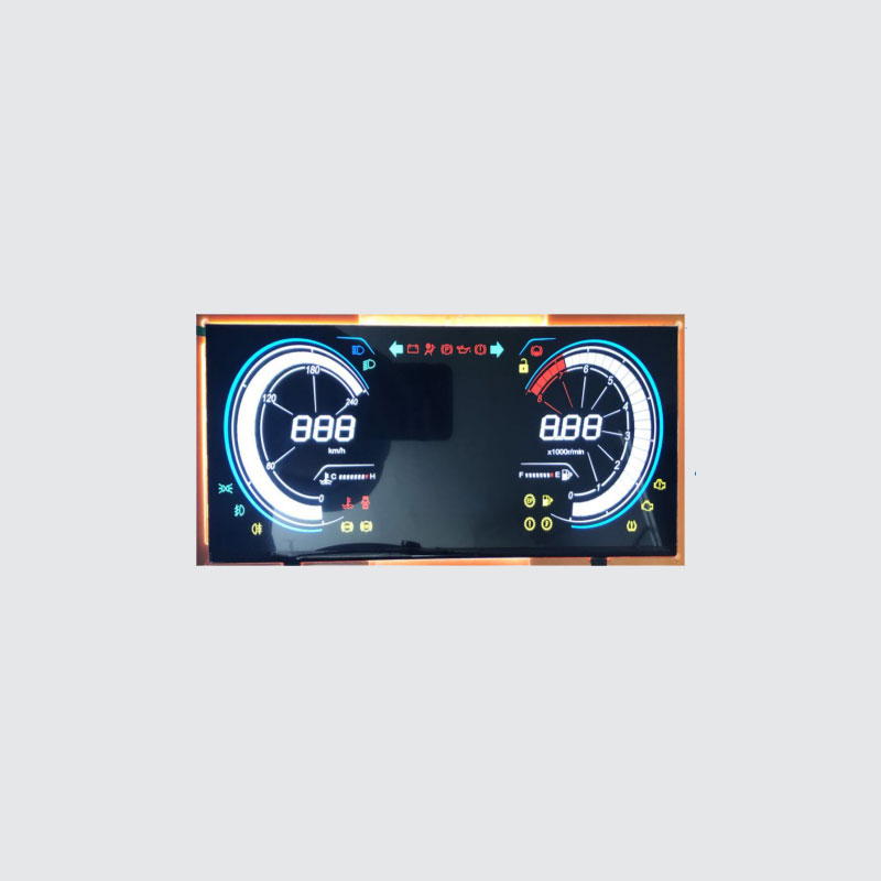 三個屏幕組裝在一起顯示案例優(yōu)勢:產(chǎn)品外形根據(jù)需要實現(xiàn)異型刻度盤可以實現(xiàn)輝度漸變效果成本是全TFT模組的約1/4產(chǎn)品外形異型:我司配備異形切割機,以滿足生產(chǎn)多種形狀產(chǎn)品的需要,如正方形,長方形,圓形,還有其他形狀的多邊形。我司屏產(chǎn)品可以直接和FPC連接,也可以生產(chǎn)多IC+多PFC.